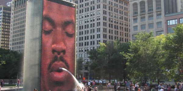 Located as it is near street-level along Chicago's bustling Michigan Avenue at the corner of The Art Institute in Chicago's Millennium Park, visitors may be initially struck by the transformative serene setting, surrounded by trees, but also enveloped by the walls of neighboring skyscrapers.